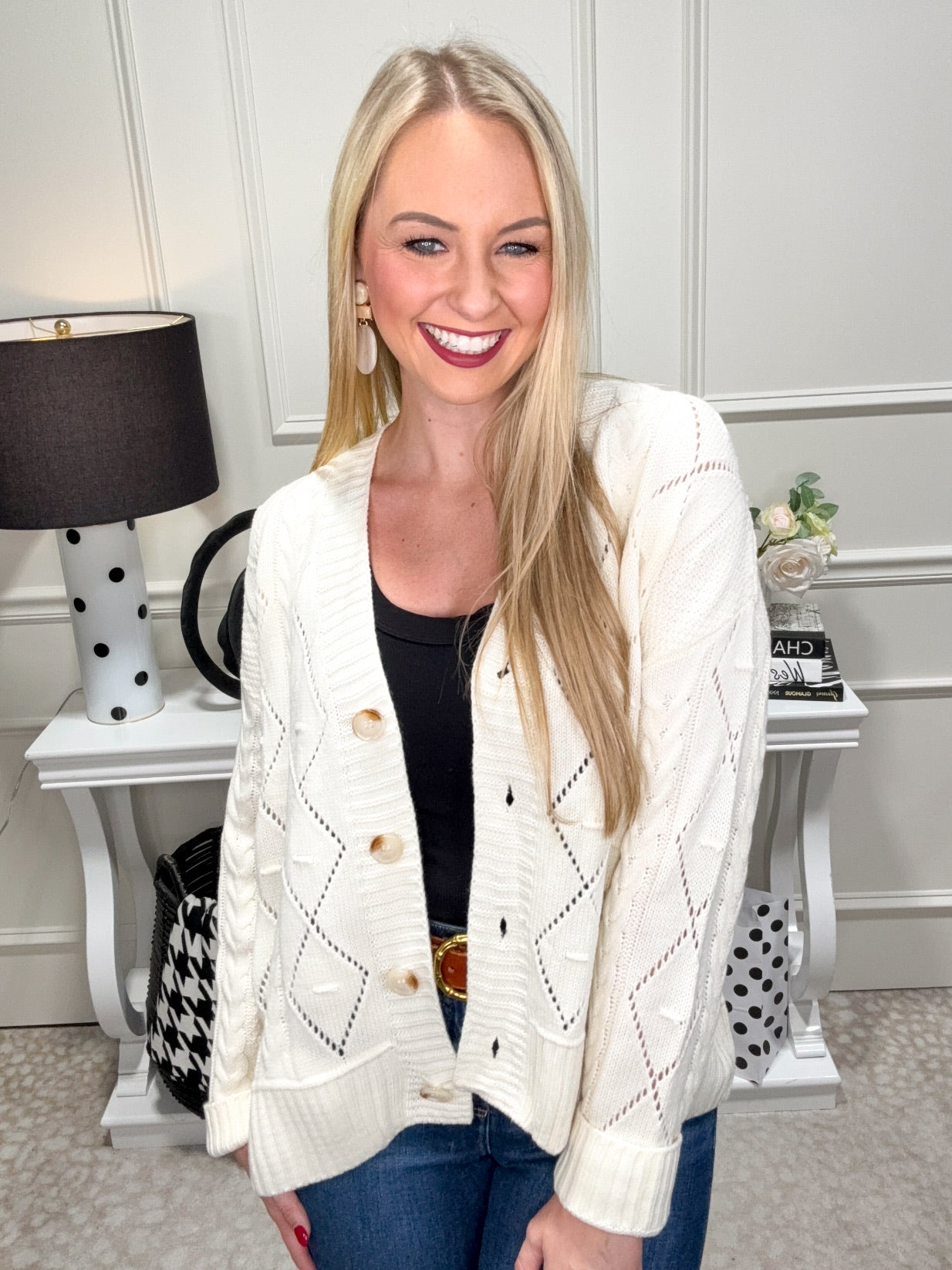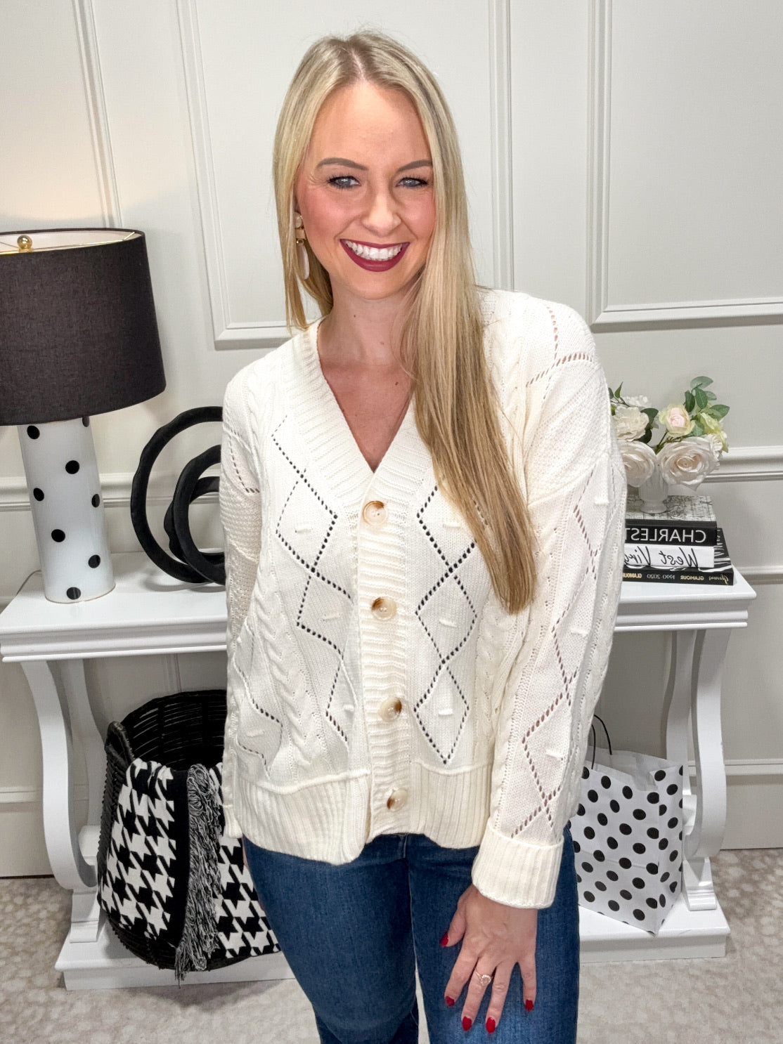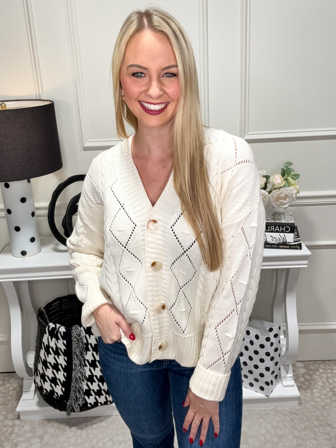 Wrap yourself in cozy charm with the Emma Cardigan, a cream-colored button-up perfect for layering. Its soft texture and easy-to-wear design make every outfit feel effortlessly cute and comfy. Whether you're lounging with a book or heading out for a playful day, this cardigan adds a touch of warmth and style!
