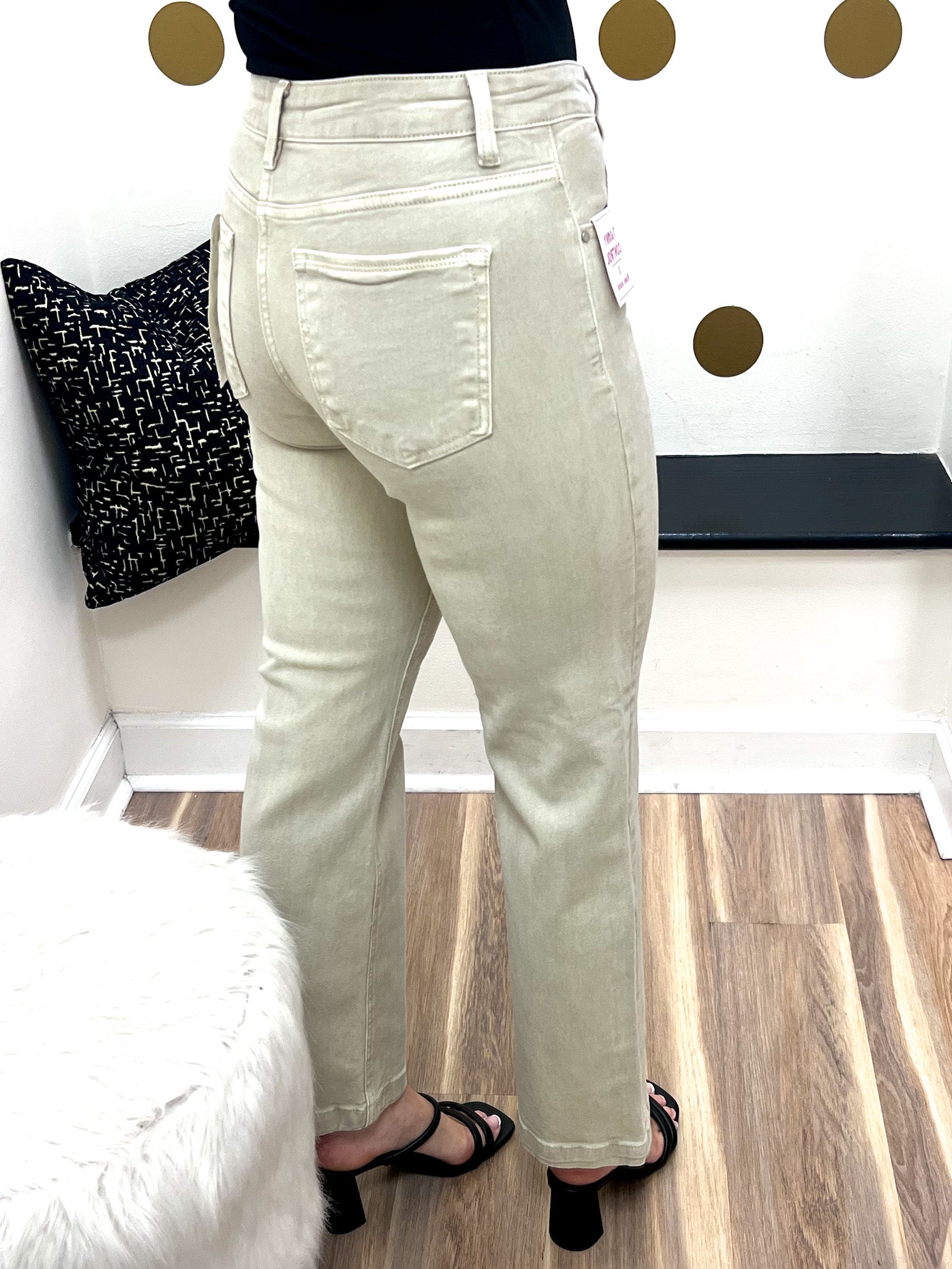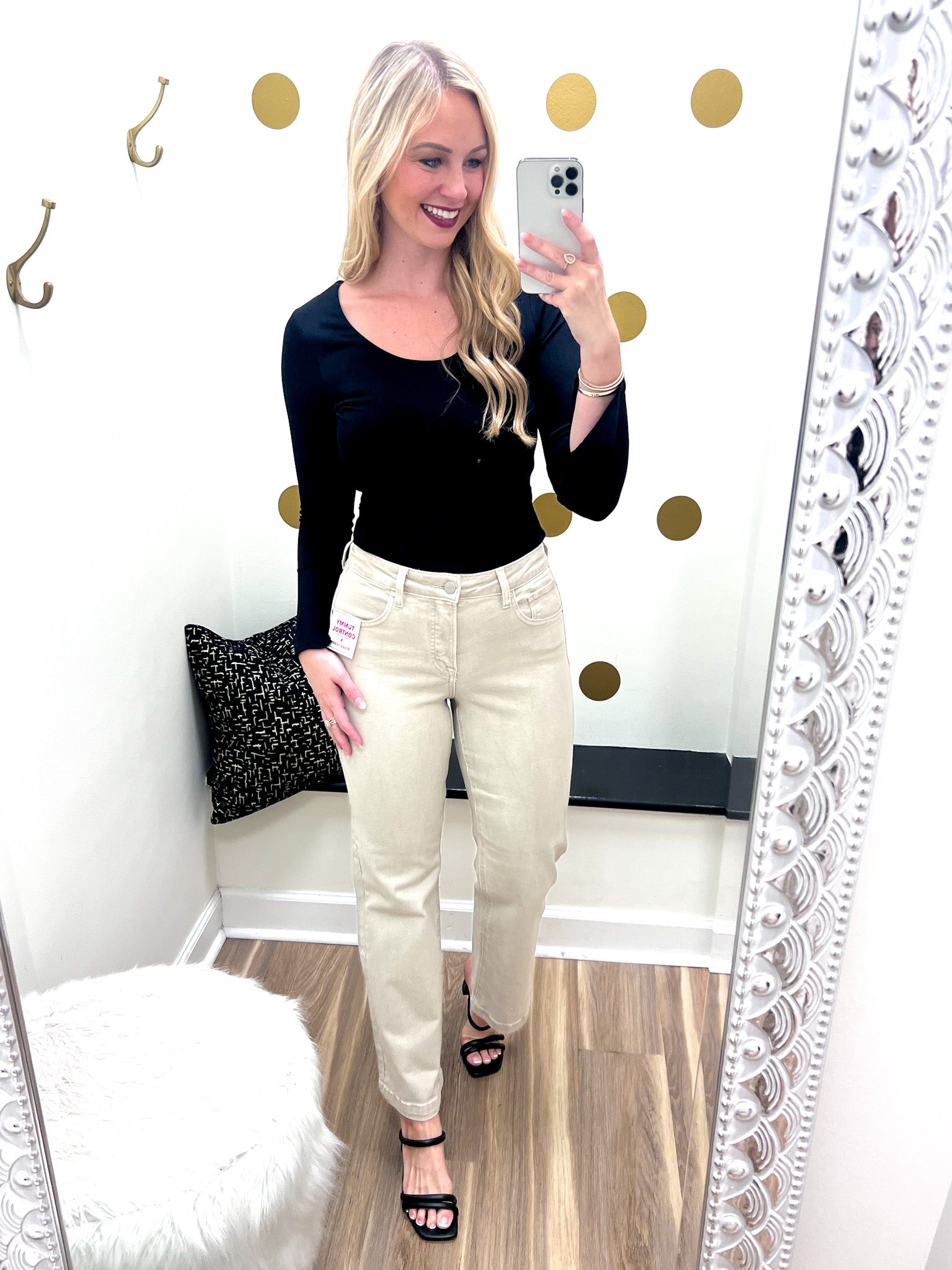 Meet your new favorite fit: Dorthy Jeans in almond neutral denim. These mid-rise ankle straight jeans offer gentle tummy control to keep you feeling confident all day long. The flattering cut hugs just right, while the neutral shade pairs effortlessly with any top. Perfect for playful days or casual nights, Dorthy Jeans bring comfort and style together in one chic package.