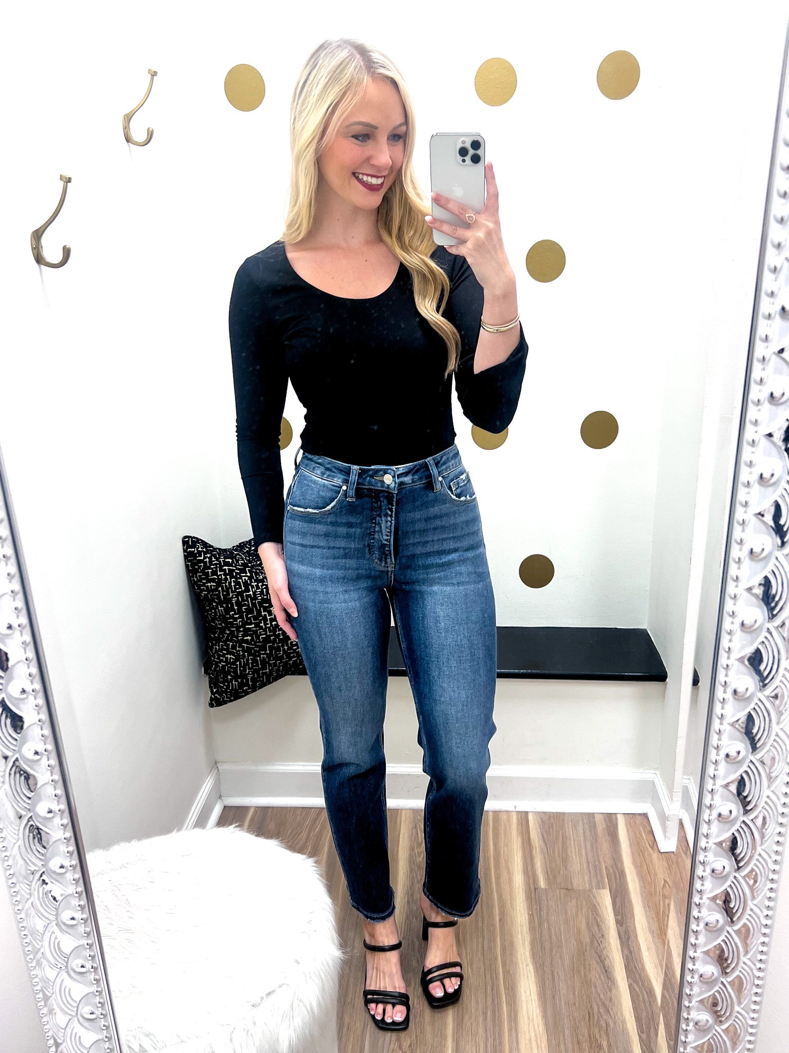 These Isabelle Jeans in a dark wash combine playful style with tummy-control magic. Featuring a high-rise crop and a straight-leg cut, they're perfect for showing off your favorite shoes while keeping your midsection smooth and comfy. Dress them up or down for effortless chic every day.