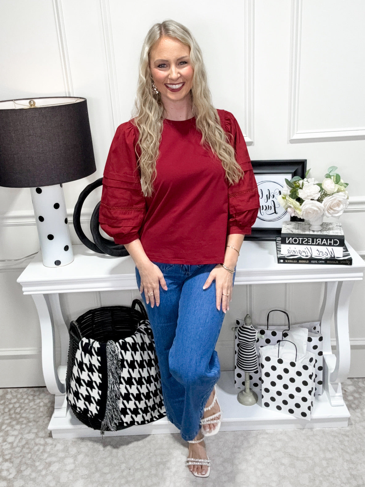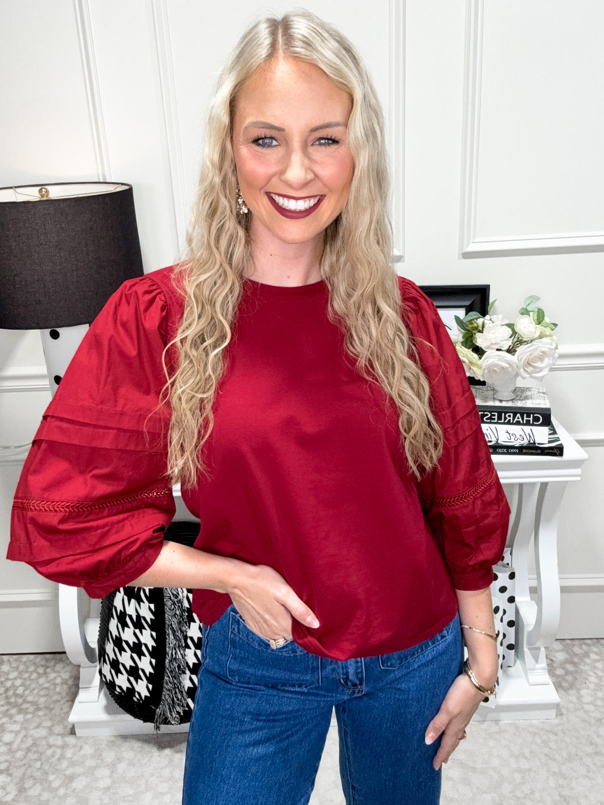 The Libby Top brings a playful twist to your wardrobe with its charming 3/4 puff sleeves and delicate ladder lace trim. Finished with button closure cuffs, this solid top adds a flirty, feminine touch that's perfect for any casual outing or dressy occasion.