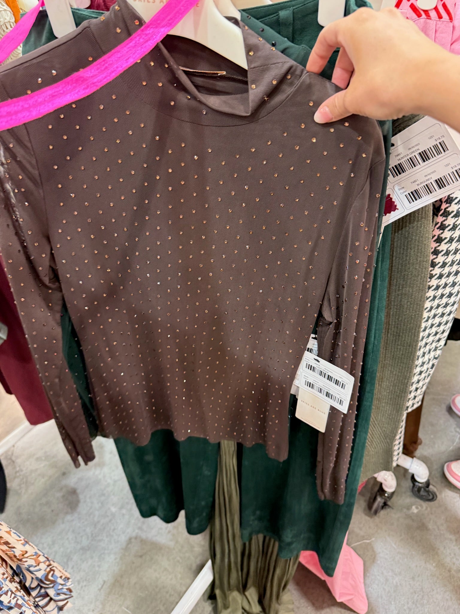Add a touch of intrigue to your wardrobe with the Emmy Top. This playful, dark brown mock neck features an embellished mesh design that effortlessly blends sophistication with a hint of flirtiness. Perfect for layering or wearing on its own, it brings a stylish edge and a dash of charm to any outfit.